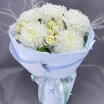 Букет невероятно нежный! Оформляла заказ в небольшом размере -уменьшенный, но несмотря на это, букетик достаточно достойно выглядит!Очень крупные одноголовые хризантемы и красиво всё упаковано. Я доставкой осталась довольна.